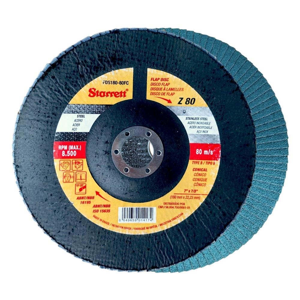 | Nome | Disco lixa Fibra Flap Zirconio Inox/Ferro 180mm 80 Starrett |