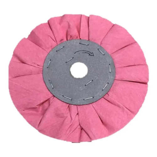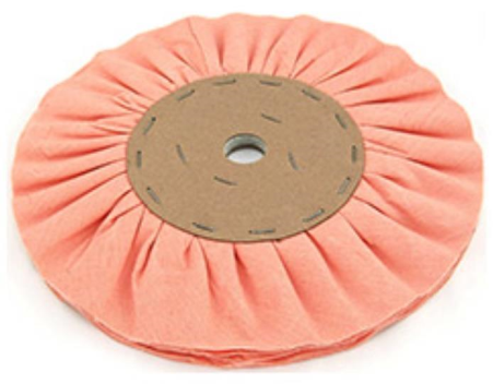 Disco de algodão (cru ou resinado), flanela ou sisal franzido. Estrangulamento do tecido impede que o disco desfie e reduz a temperatura de polimento, produzindo melhor resultado.