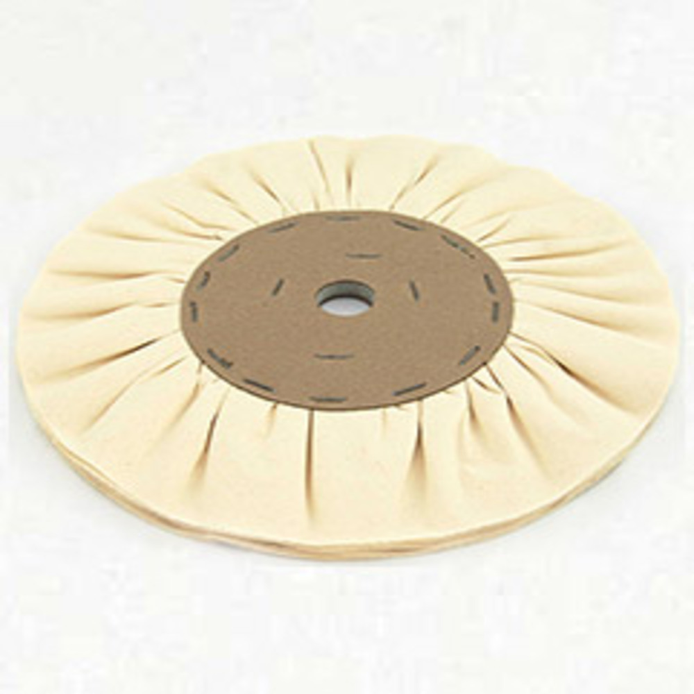 Disco de algodão. Estrangulamento do tecido impede que o disco desfie e reduz a temperatura de polimento, produzindo melhor resultado.
