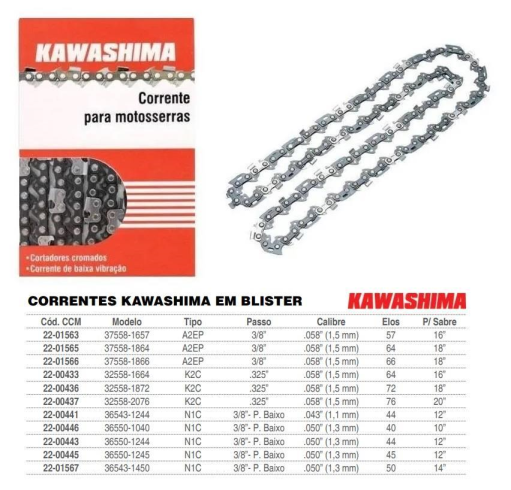 | Nome | Corrente Motosserra Sabre 14 25 dentes - Kawashima 2201567 |