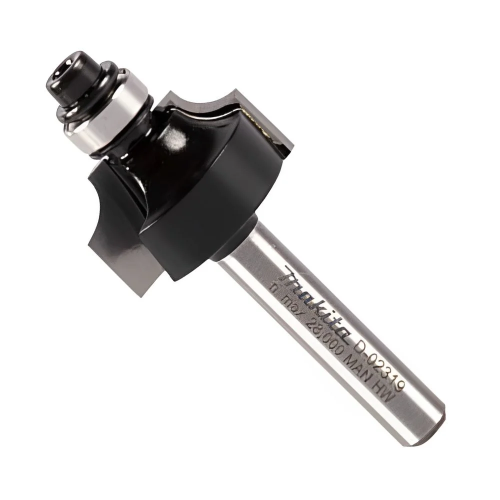 Fresa para moldura com rolamento da Makita, bitola 3/16" x 1/2" de corte, haste de 1/4". Ideal para acabamento decorativo em madeira ou MDF com precisão.