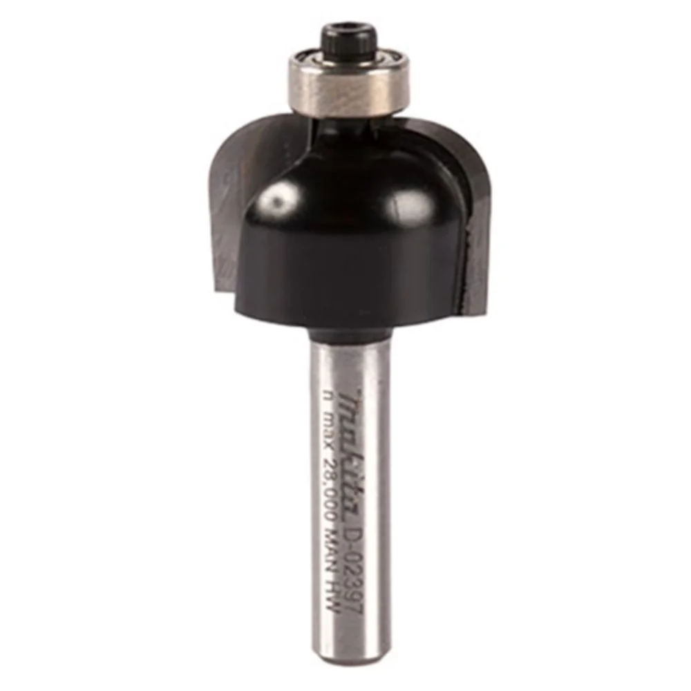 Fresa para moldura côncava com rolamento da Makita - haste de 1/4", largura de corte 9/16", profundidade 1.1/8". Ideal para acabamentos decorativos em madeira.