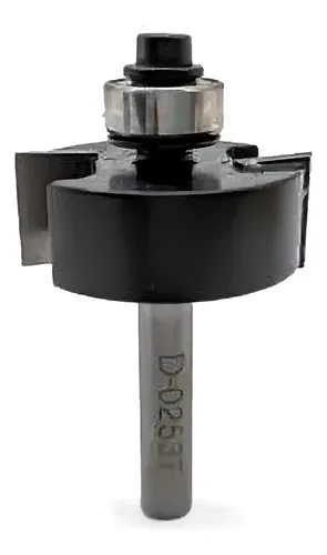Fresa com rolamento modelo D-02537 com haste de 1/4" (~ 6,35 mm) destinada a tupias manuais, destinada à realização de perfil de rebaixo (com rolamento) com diâmetro de corte de aproximadamente 1-1/4" (~ 31,75 mm) e espessura de corte de cerca de 1/2" (~ 12,7 mm). Ideal para marcenaria de acabamento ou para criação de canais em madeira maciça ou derivados, essa fresa proporciona corte limpo com guia de rolamento para melhor controle.