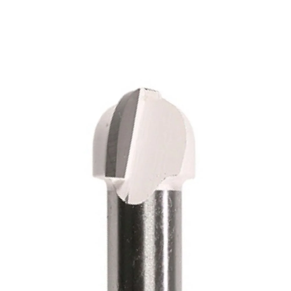 Trata-se de uma fresa "meia cano" ou perfiladora da marca Makita, de haste Ø 6 mm, corpo Ø 20 mm, comprimento de trabalho de cerca de 8 mm e raio de curvatura de 4 mm, com duas arestas de corte - ideal para usinagem de molduras, ranhuras convexo-côncavas e acabamentos decorativos em madeira ou materiais similares.