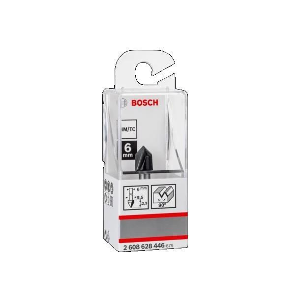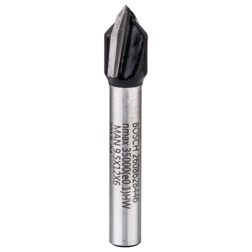 Fresa em V, 6 mm, D1 9,5 mm, L 12,35 mm, G 45 mm, 90 °