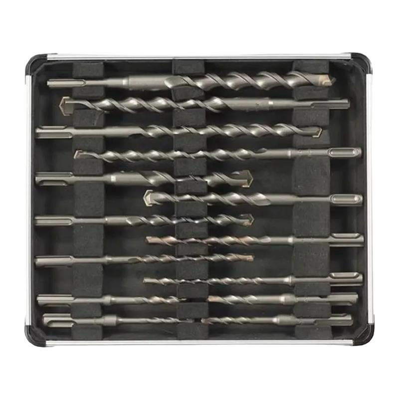 Jogo completo de brocas para martelete SDS plus, com 14 brocas e uma maleta em alumínio de excelente qualidade.