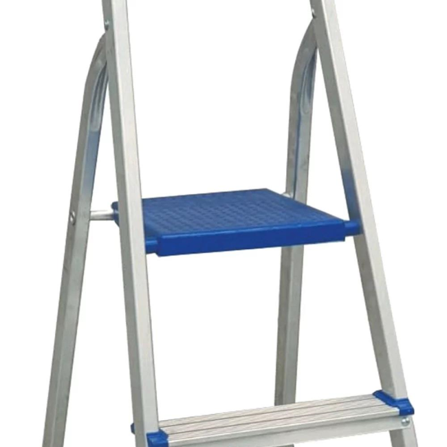 Fabricada em alumínio de Liga Especial o que a torna leve para o manuseio e super resistente. Ideal para moradores de apartamentos e casas térreas que necessitam de auxílio para executar algumas tarefas diárias como trocar uma lâmpada, efetuar limpezas ou pegar objetos em locais mais altos como a parte de cima de armários e maleiros. É construída com material de excelente qualidade, não enferruja, possui os degraus, sapatas e plataforma antiderrapantes proporcionando muito mais estabilidade em seu uso. A plataforma é fabricada em polipropileno de alta resistência e possui trava de segurança.