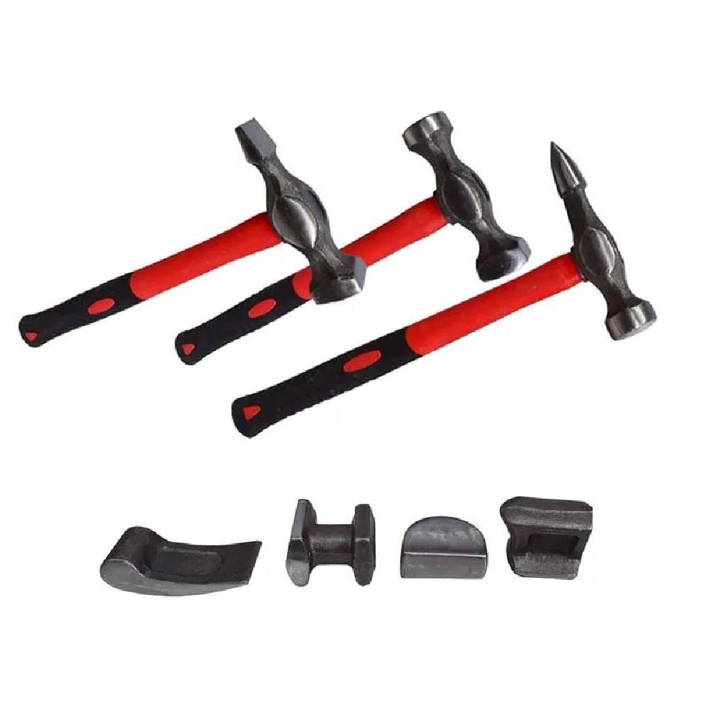 Jogo Chapeador para Reparos Automotivos MTX com 3 Martelos e 4 Tassos, indicado para Funilarias em Geral, Martelinhos de Ouro, Oficinas e Funilarias Artesanais.