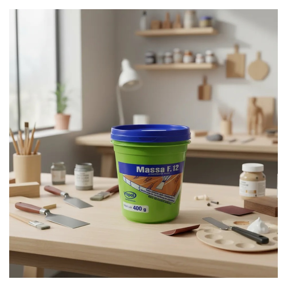 A Massa F12 é uma massa especial para calafetar assoalhos e preparar superfícies de madeira, oferece os seguintes benefícios: Compatível com os sistemas comuns de acabamento, tais como: lacas, tinta látex, poliuretanos, esmalte sintético, ceras, vernizes, etc. Fácil de lixar, Solúvel em água enquanto na fase pastosa. Não tem cheiro ou vapores tóxicos