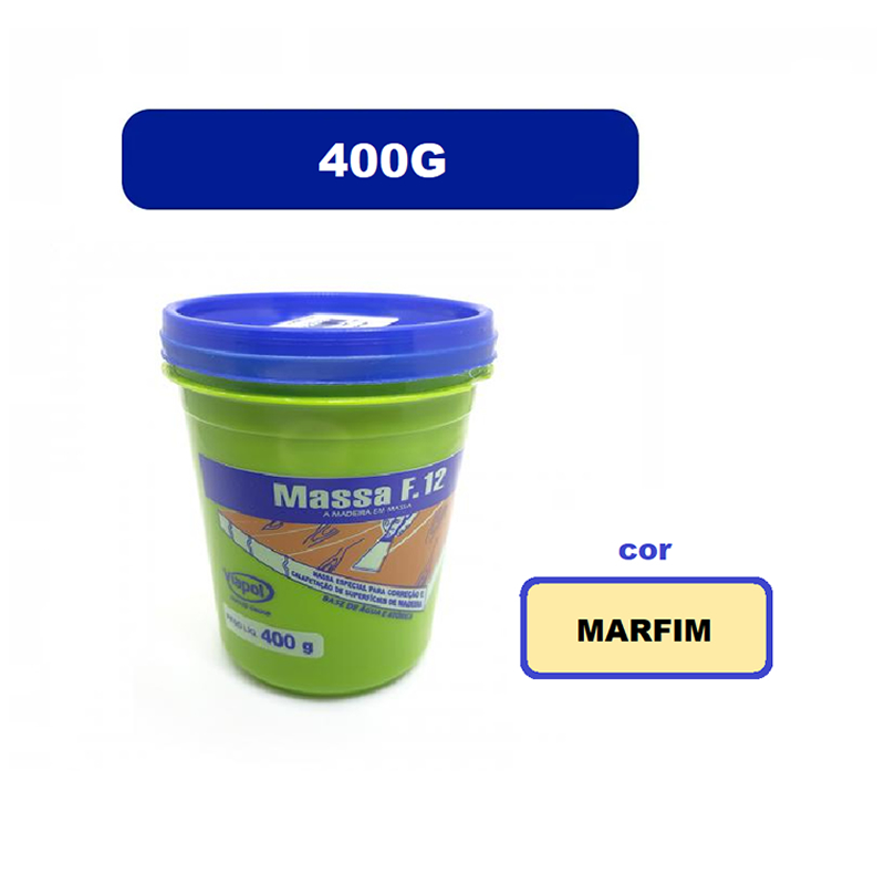 A Massa F12 é uma massa especial para calafetar assoalhos e preparar superfícies de madeira, oferece os seguintes benefícios: Compatível com os sistemas comuns de acabamento, tais como: lacas, tinta látex, poliuretanos, esmalte sintético, ceras, vernizes, etc. Fácil de lixar, Solúvel em água enquanto na fase pastosa. Não tem cheiro ou vapores tóxicos