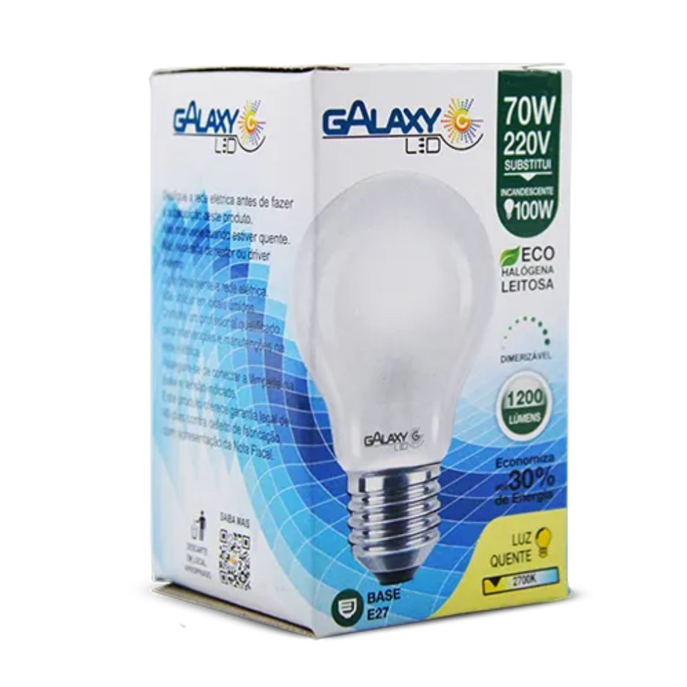 A lâmpada bulbo filamento halógena 70W 220V Galaxy 5009 é uma lâmpada incandescente de tecnologia halógena projetada para proporcionar iluminação branca quente com excelente reprodução de cores e brilho uniforme. Essa lâmpada é adequada para uso geral em ambientes internos, onde se deseja luz contínua e confortável com instalação simples em soquetes padrão E27.