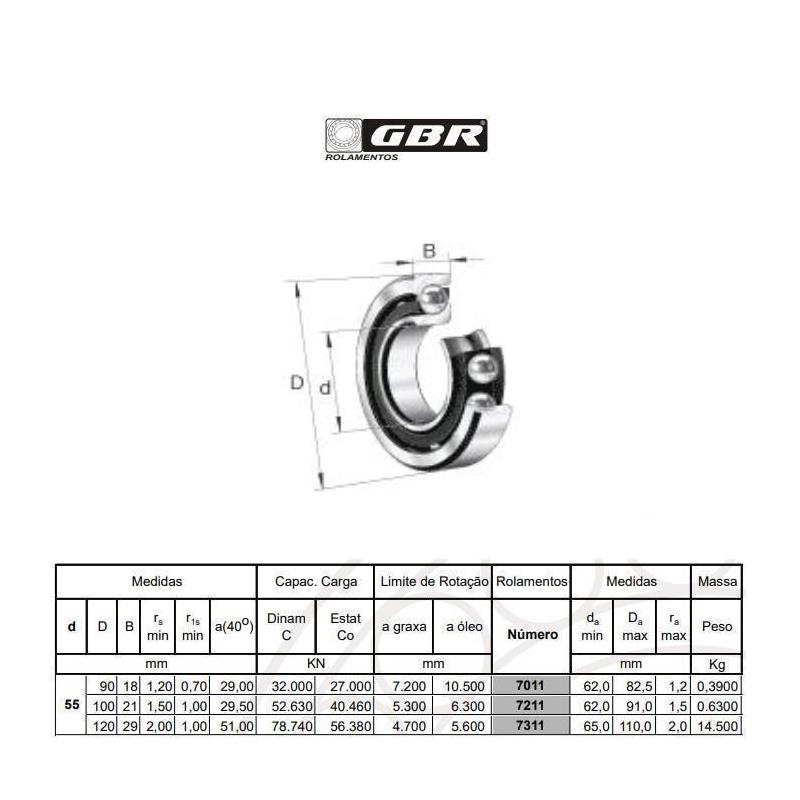 | Nome | Rolamento contato angular esferico Z7211BWG - GBR |