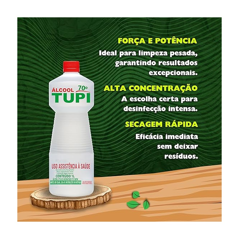 O Álcool 70° Tupi é um desinfetante líquido, ideal para higienizar e desinfetar superfícies em ambientes domésticos, comerciais e institucionais.