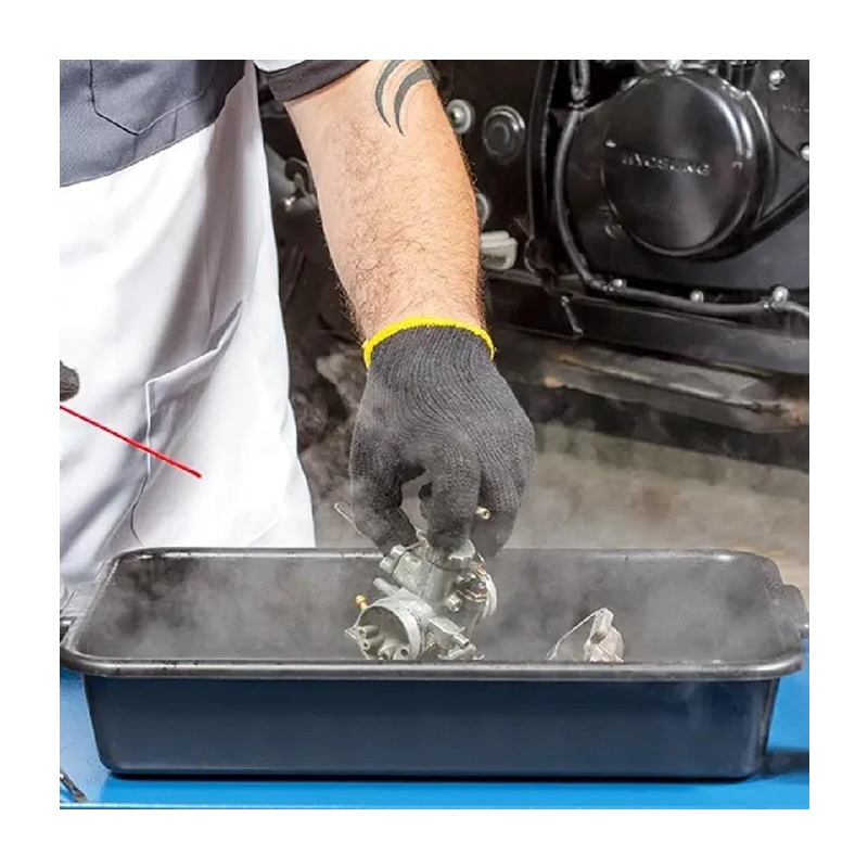 Instrução para limpeza dos componentes carbonizados: Aplique o produto de maneira uniforme sobre as peças carbonizadas deixando agir por cerca de 15 minutos, retirando os resíduos com o auxílio de um pincel ou pano limpo. Seque os componentes com papel ou ar comprimido.