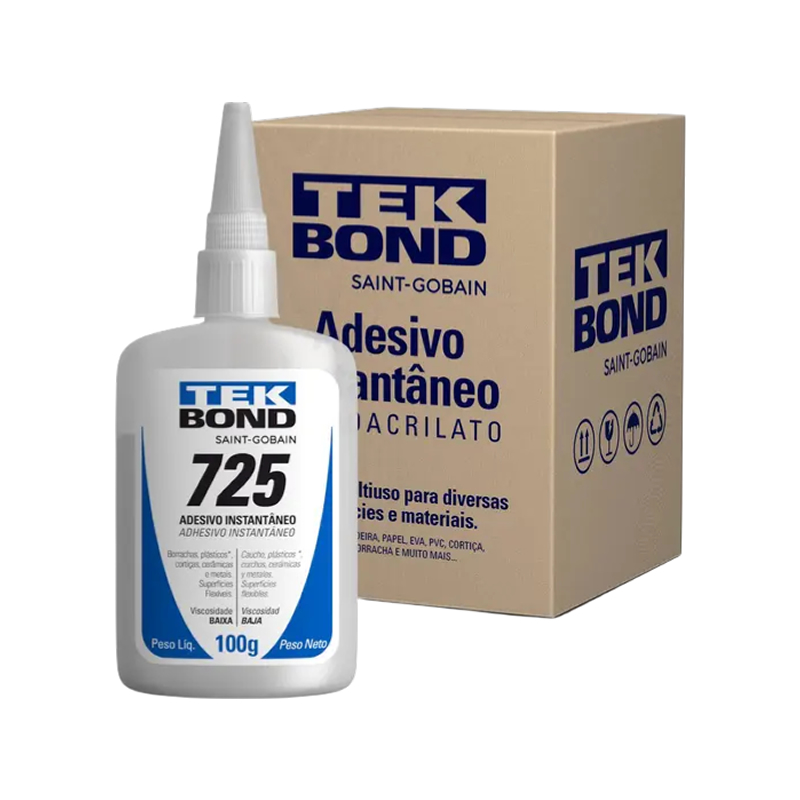 A Cola Instantânea Tekbond 725 é um adesivo de cura rápida, de baixa viscosidade, ideal para colagens em superfícies lisas (não porosas), tanto flexíveis quanto rígidas. Com bico antientupimento, garante aplicação precisa e evita desperdício. Perfeita para colar metais, plásticos, borrachas, cerâmica, vidro e outros materiais lisos, sendo ideal para reparos domésticos, artesanato, modelismo e pequenas aplicações industriais.