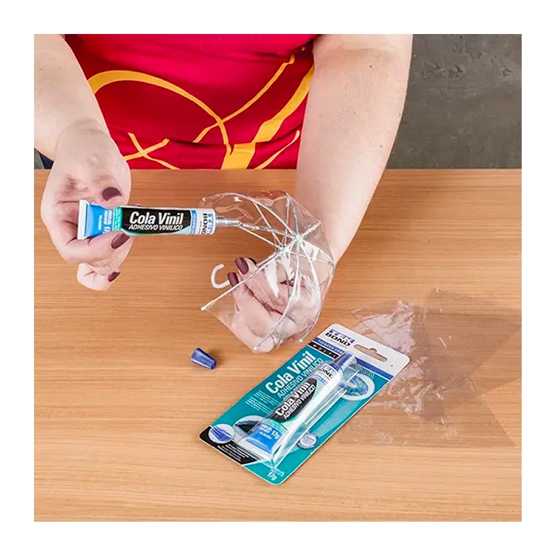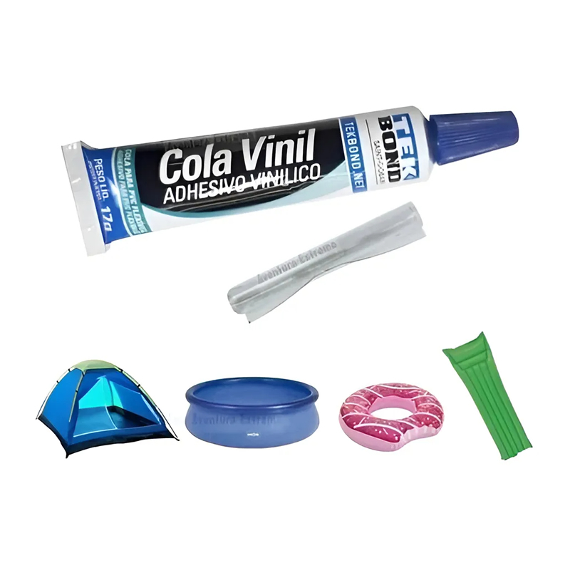 A Cola Vinil Tekbond é um adesivo transparente desenvolvido para colagem de PVC flexível entre si, ideal para reparos em barracas, lonas, boias infláveis, piscinas, malas e outros produtos vinílicos.