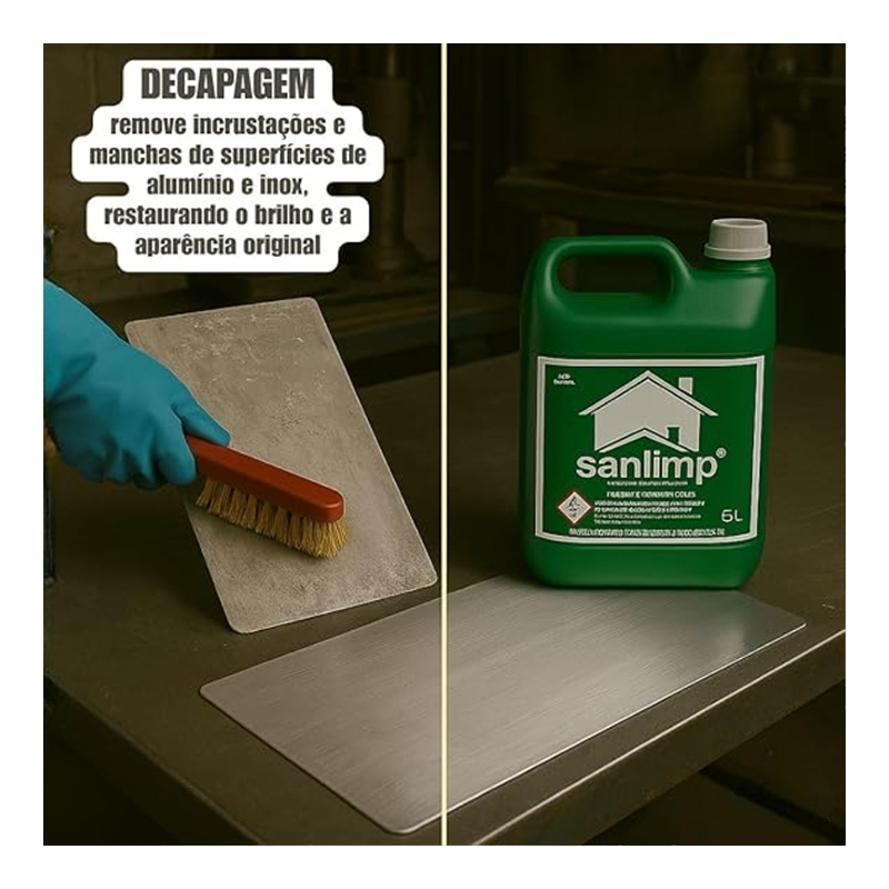 O Limpa Pedra Ácido Sanlimp 5L é indicado para a limpeza pesada pós-obra, removendo incrustações e sujeiras resistentes em pedras.
