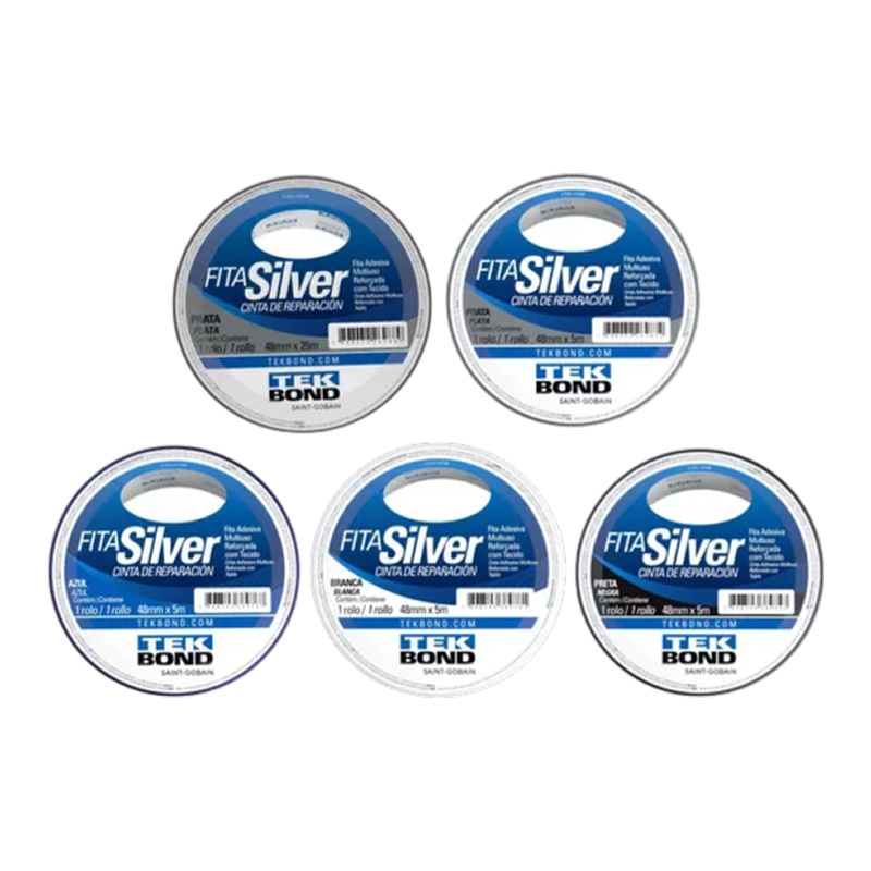A Fita Silver Tekbond é uma fita adesiva multiuso, reforçada e de alta resistência, ideal para reparos, fixações, vedação e manutenções diversas. Produzida com tecido laminado com polietileno e adesivo de borracha sintética (hot melt), oferece excelente aderência, resistência à tração e fácil aplicação - podendo ser rasgada com as mãos.