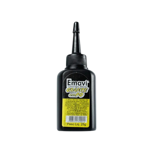 O grafite em pó da Emavi é fácil de aplicar, não atrai poeira, não mancha e oferece excelente rendimento, tornando-se essencial para manutenção preventiva e corretiva em residências, oficinas e indústrias.