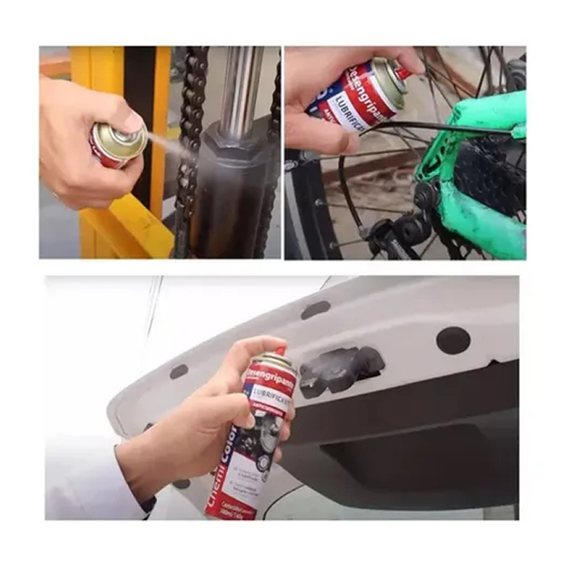 O Desengripante Chemi Color Lub é um spray desenvolvido para facilitar a remoção de porcas, parafusos e peças que estejam oxidadas, enferrujadas ou sujas. Sua fórmula contém uma mistura de óleos com aditivos especiais que proporcionam alta performance de penetração, lubrificação e proteção contra a umidade. Ideal para uso em indústrias, automóveis, motocicletas, bicicletas, equipamentos esportivos e em casa. Além disso, atua na proteção contra corrosão e facilita a limpeza de contatos elétricos e mecanismos em geral.
