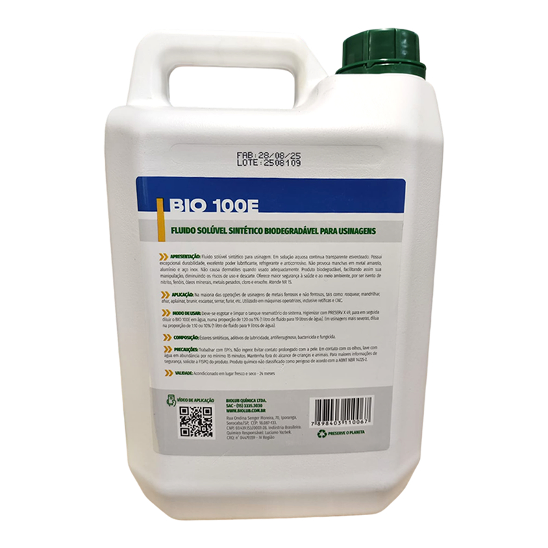 Óleo Fluido Solúvel Sintético Biodegradável 5L Bio 100E Biolub