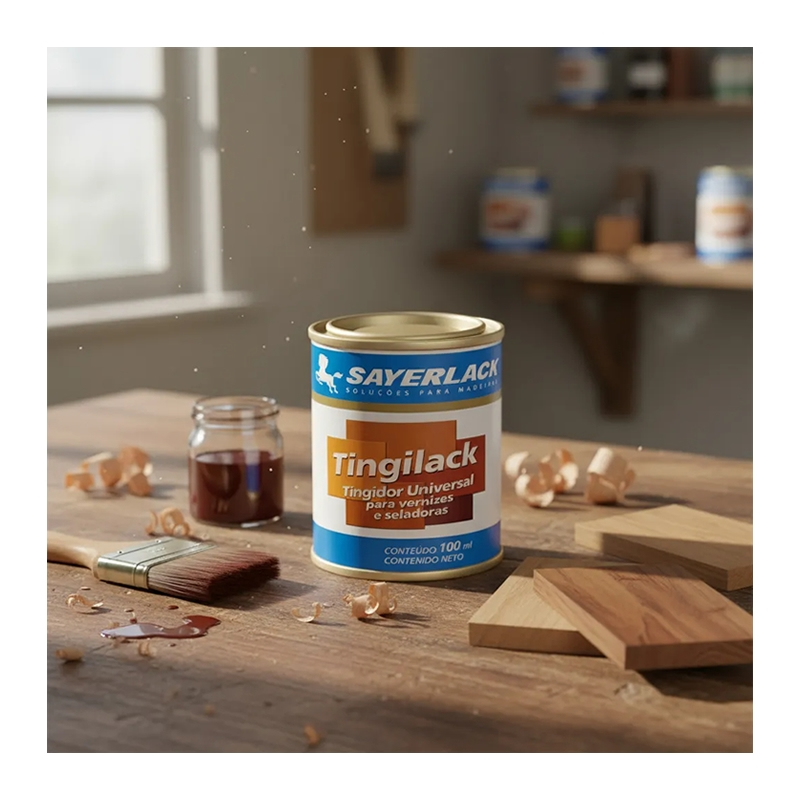O Tingilack Sayerlack é um corante super concentrado desenvolvido para tingir vernizes e seladoras com base nitrocelulose, poliuretano (PU) ou sintética. Permite ajustar e intensificar o tom do acabamento, proporcionando cores vivas, uniformes e duradouras.