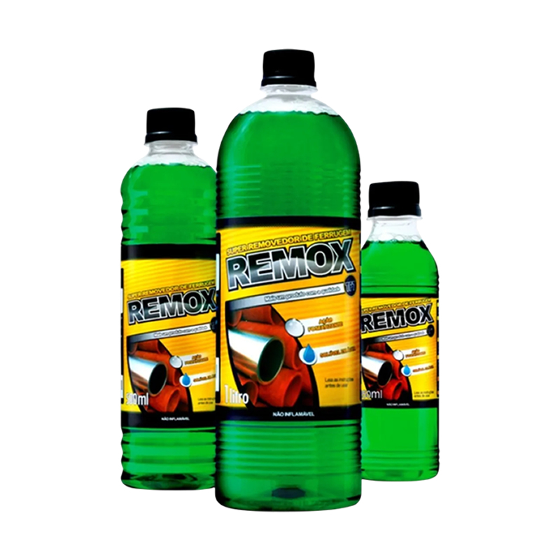 O Remox 500 ml é um poderoso removedor de ferrugem e oxidação, indicado para limpeza e preparação de superfícies metálicas antes da pintura.