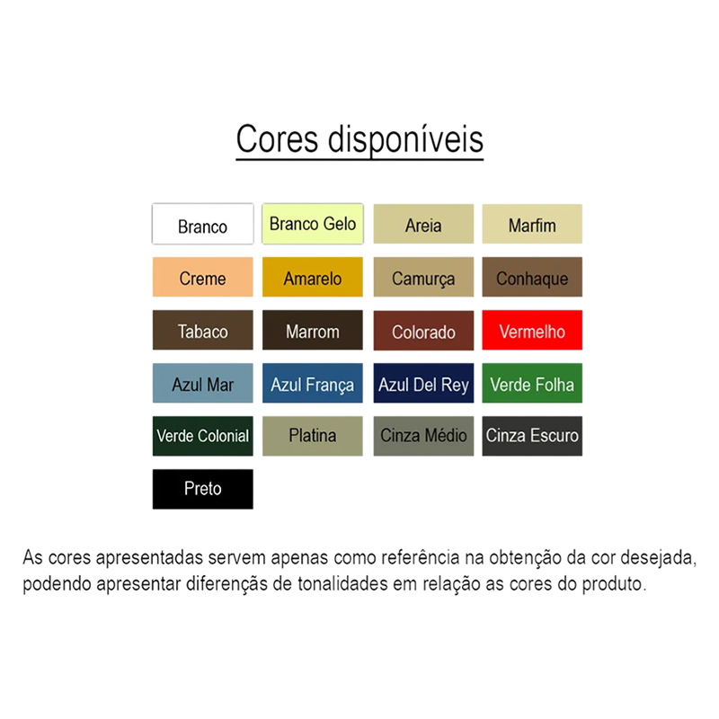 Preparação da superfície: Limpa, seca, livre de ferrugem, pó e resíduos de tinta. Aplicar fundo anticorrosivo em metais novos.