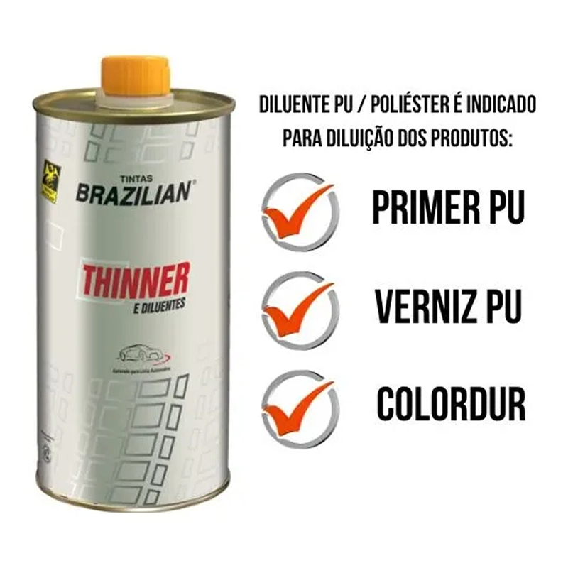 O Thinner Epóxi Brazilian 900ml é um diluente especialmente formulado para tintas, vernizes e primers à base de resina epóxi. Garante excelente poder de diluição, secagem controlada e ótima nivelagem da pintura, sem comprometer o brilho, aderência ou resistência química do revestimento.