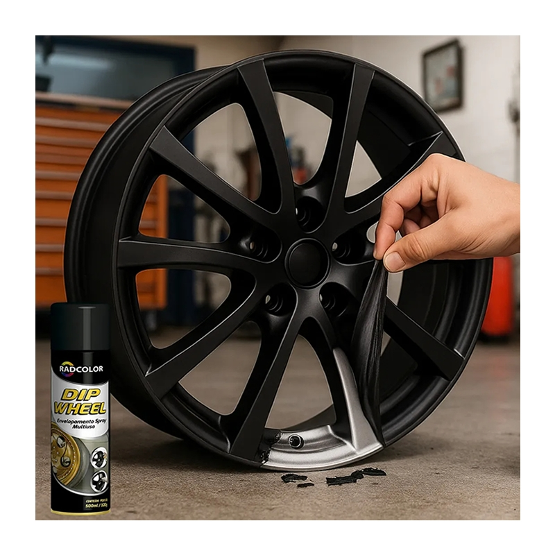 A Tinta Spray Radcolor Dip Wheel Preto RC2300 é um revestimento removível em aerossol, ideal para envelopamento líquido de rodas, peças metálicas e plásticas. Forma uma película protetora com acabamento uniforme e reversível, que pode ser removida facilmente sem danificar a superfície original.