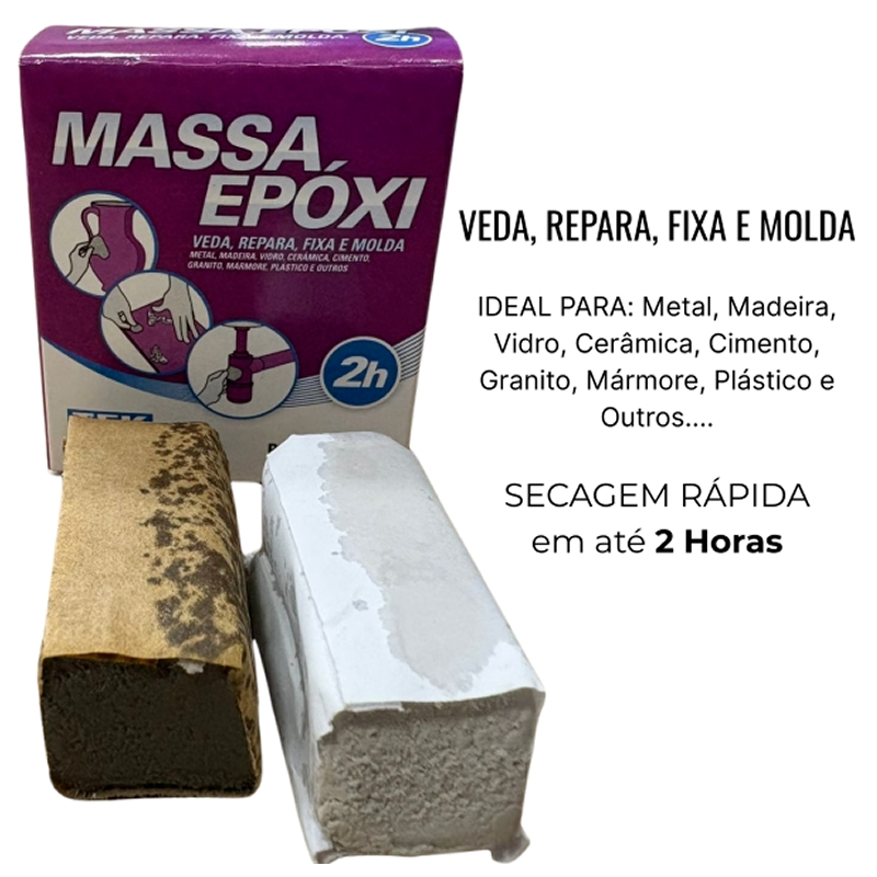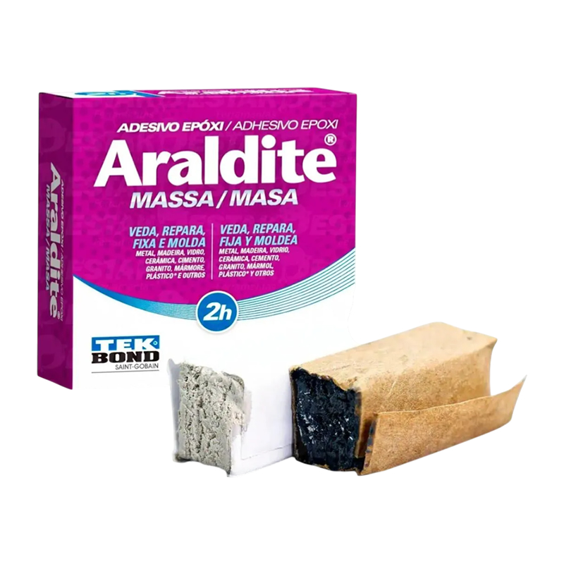 A Massa Epóxi Araldite Tekbond é um adesivo bicomponente de alta performance, desenvolvido para unir, reparar, colar, vedar e reconstruir diferentes tipos de materiais. É fornecida em duas massas (resina branca e endurecedor cinza) que, ao serem misturadas em proporções iguais, resultam em uma massa resistente e moldável.