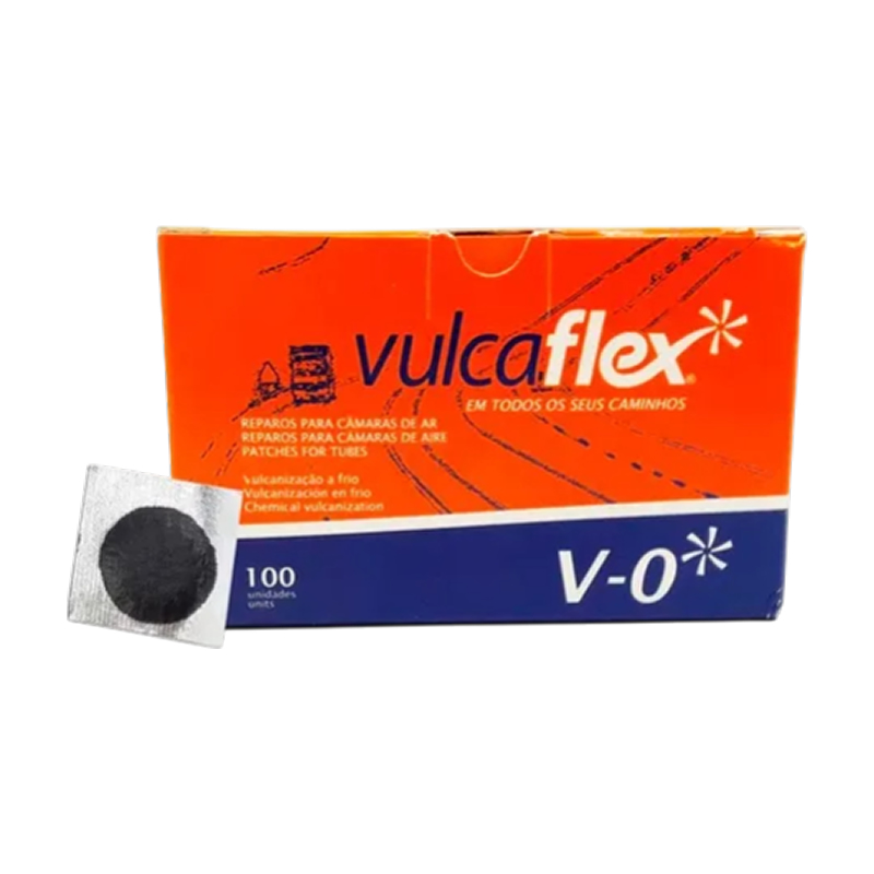 O remendo redondo Vulcaflex V-0 1300 é um remendo a frio projetado para reparar câmaras de ar, especialmente para furos redondos como os causados por pregos e objetos pontiagudos. Possui uma camada autovulcanizante preta que garante boa adesão sem necessidade de calor, proporcionando vedação eficiente. O acabamento preto torna o reparo mais discreto. Utiliza-se cimento vulcanizante ( "cimento a frio" ) apropriado para fixá-lo. É apropriado para uso profissional (oficinas, borracharias), bem como uso doméstico ou para bicicletas, motos, etc.