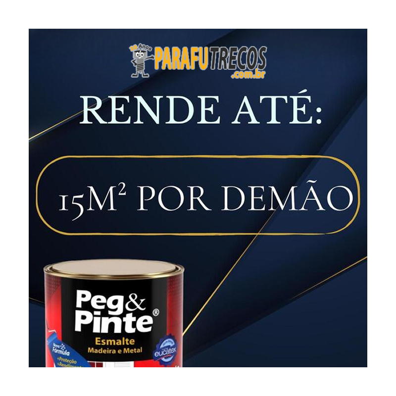 Peg & Pinte Esmalte é um produto de boa qualidade com alto brilho e resistência. Indicado para pintura em metais ferrosos, madeira, alumínio, galvanizado, PVC e alvenaria. Uso Externo e Interno.