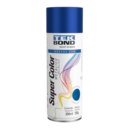 A Tinta Spray Super Color Metálico Tekbond oferece acabamento metálico brilhante, secagem rápida, alta cobertura e excelente aderência em diversas superfícies.